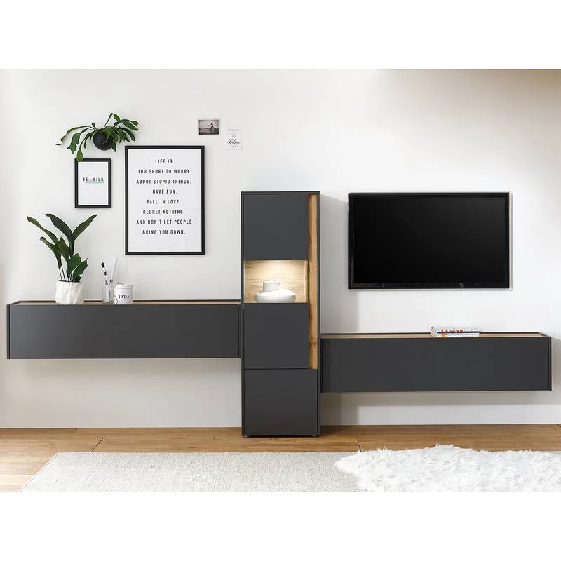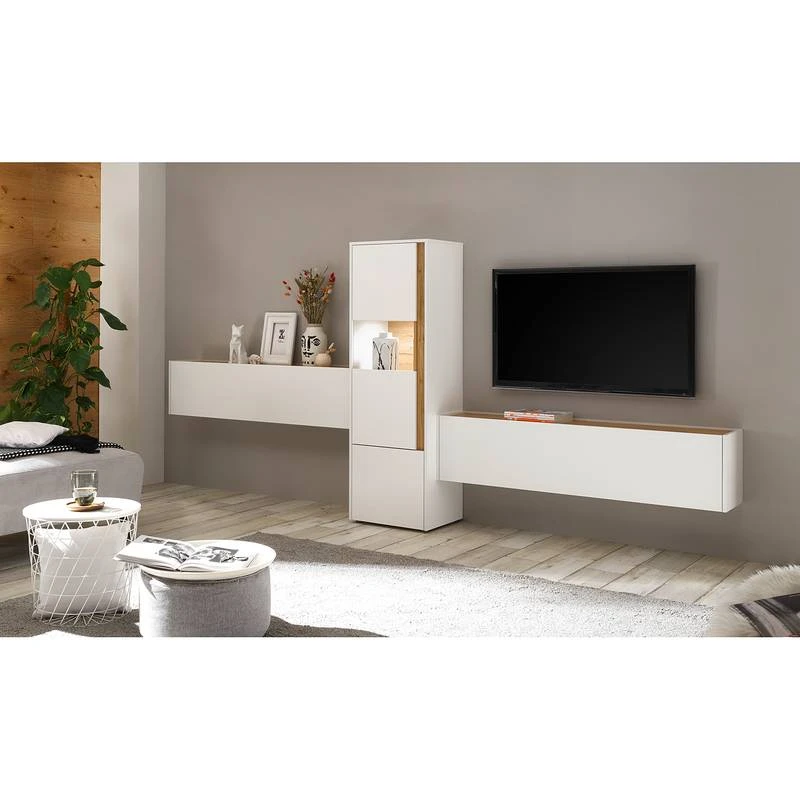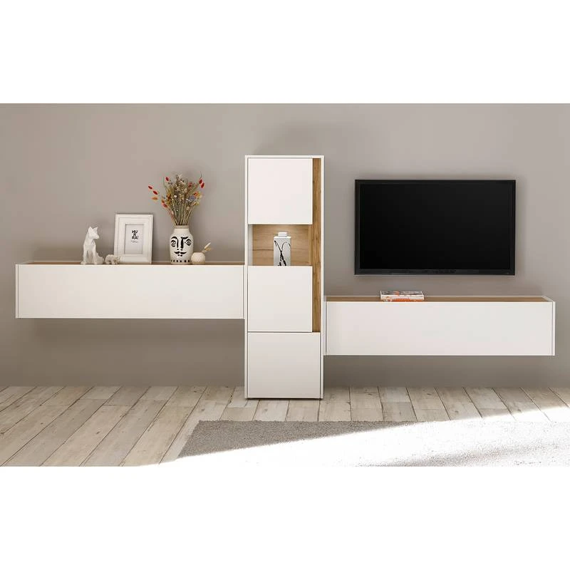 - Contenu de la livraison : Ensemble comprenant 2 enfilades murales et 1 buffet haut, sans éclairage ni accessoires