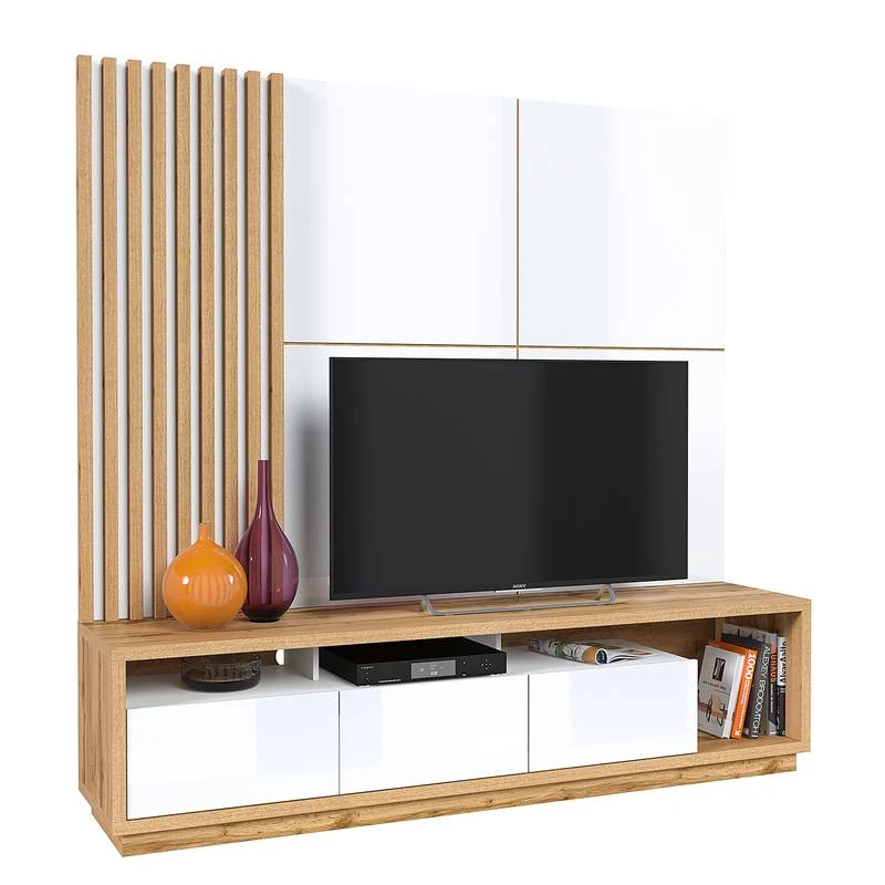 - Contenu de la livraison : Ensemble comprenant 2 panneaux muraux et 1 meuble TV, sans accessoires